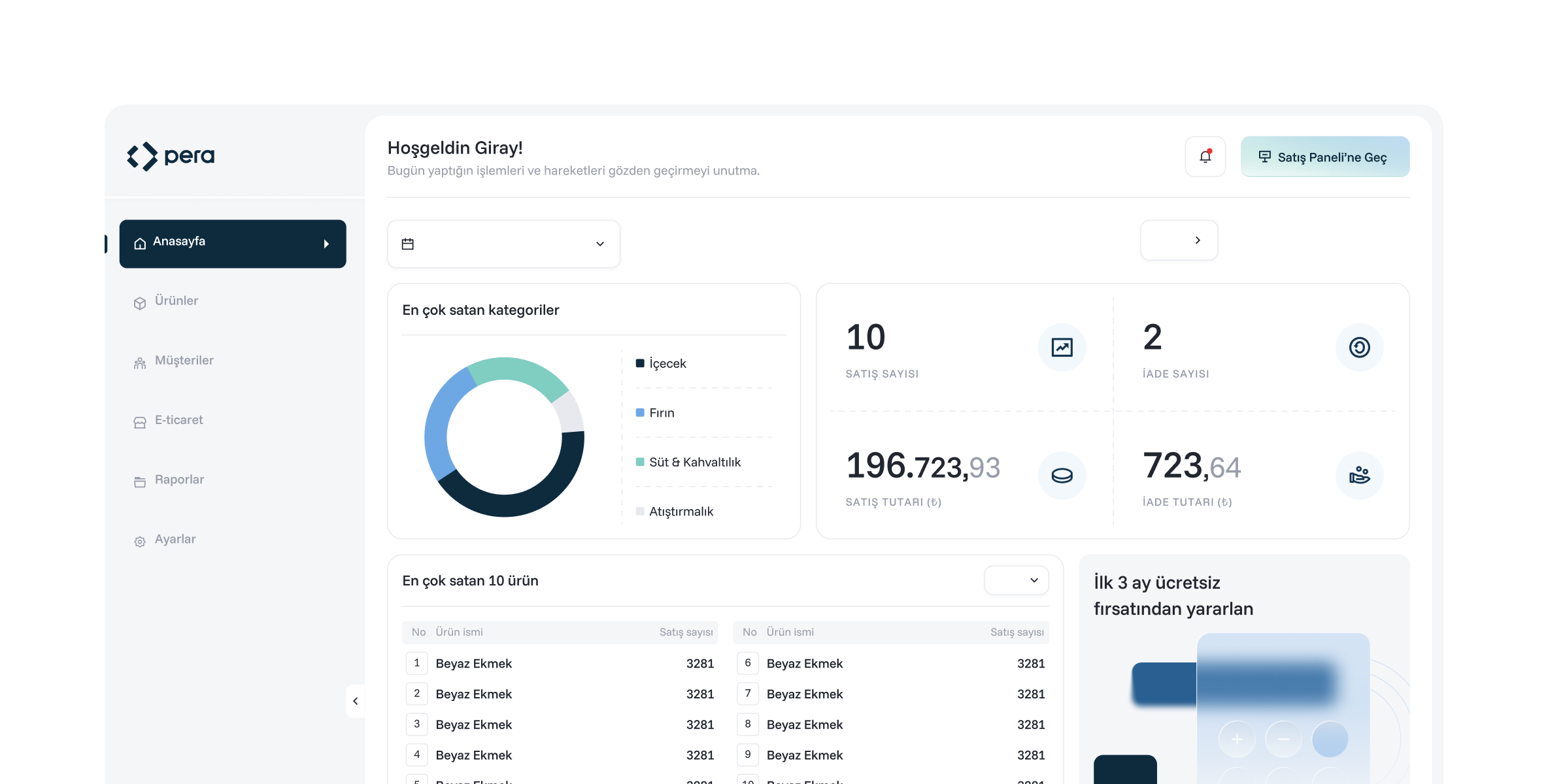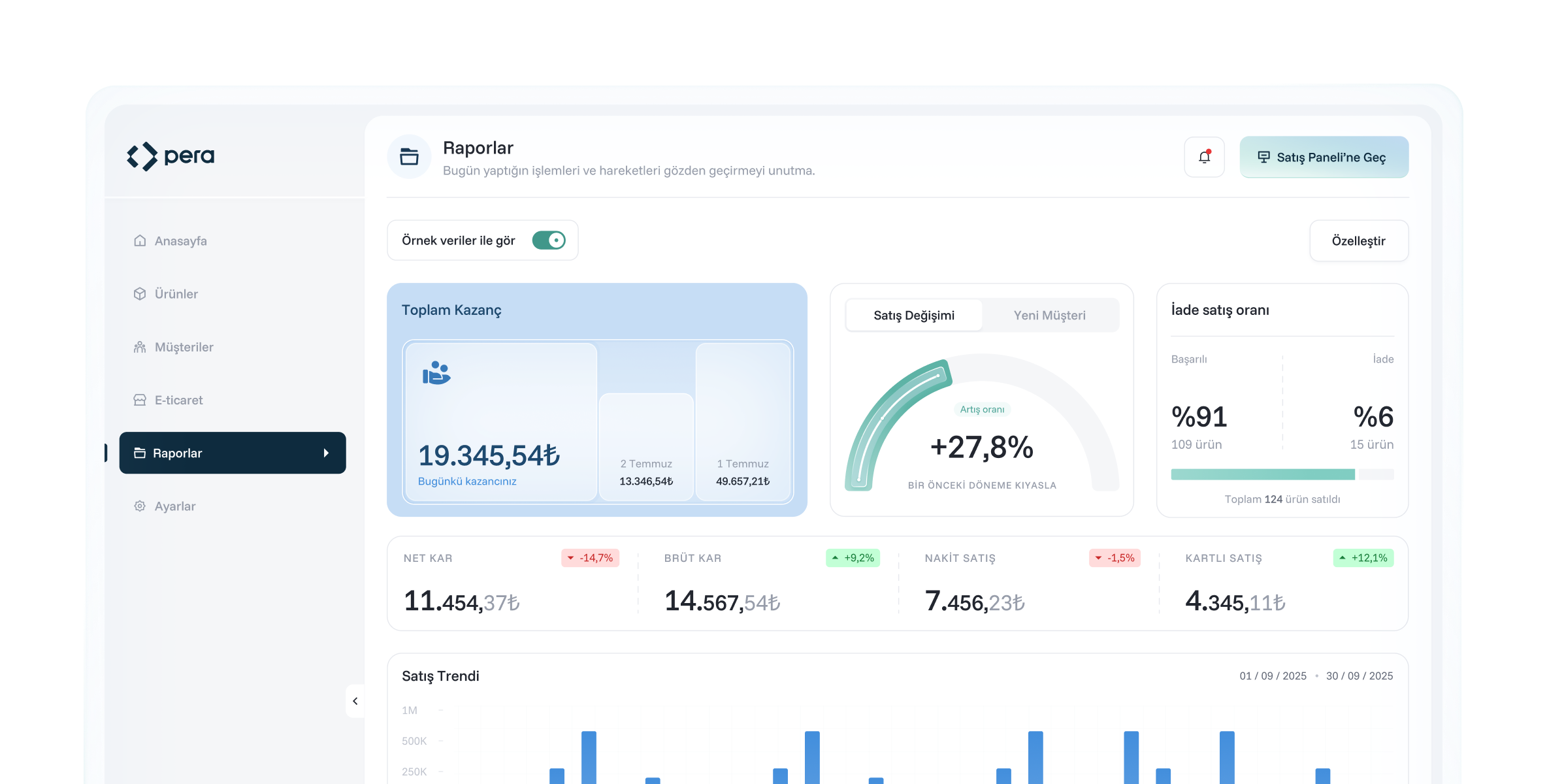 Stoktan satışa, ödemeden rapora kadar her şey Pera'da bir arada.