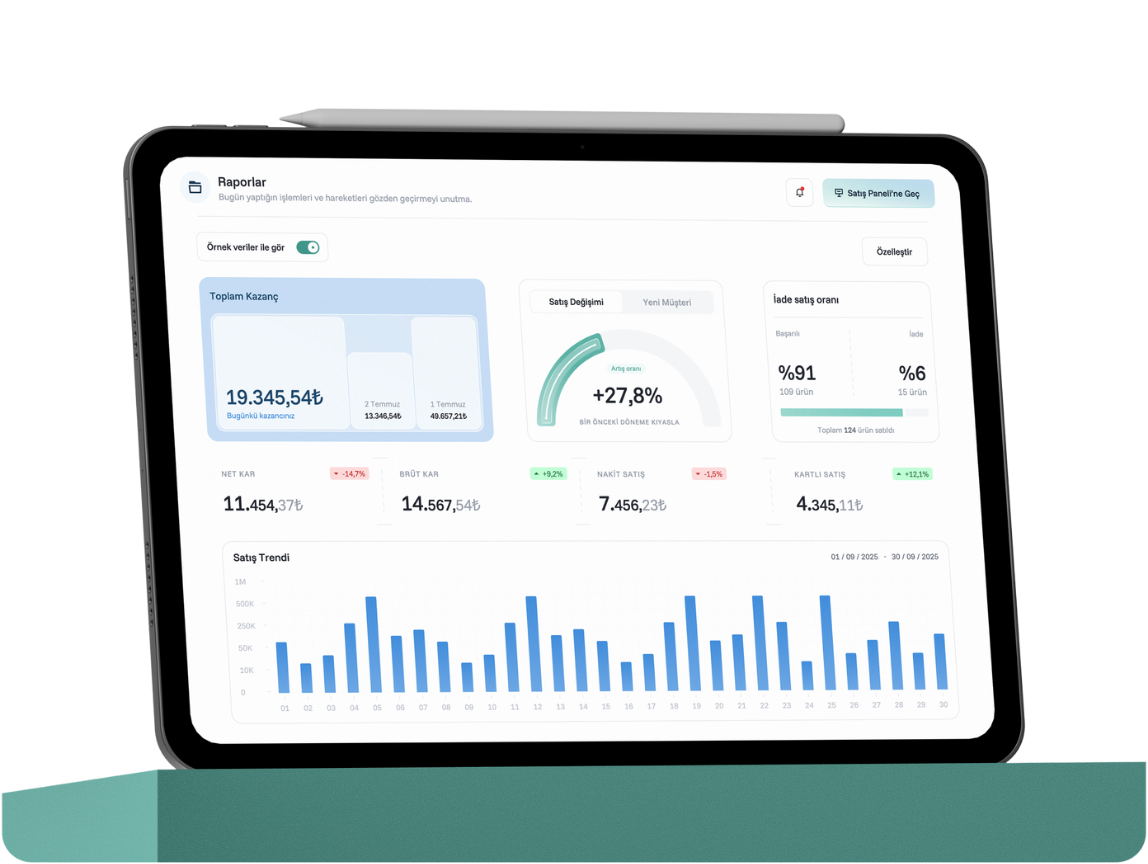 Ciro, satış hareketleri ve ürün/kategori bazlı analizlerle doğru kararları verin, işinizi güvenle büyütün.