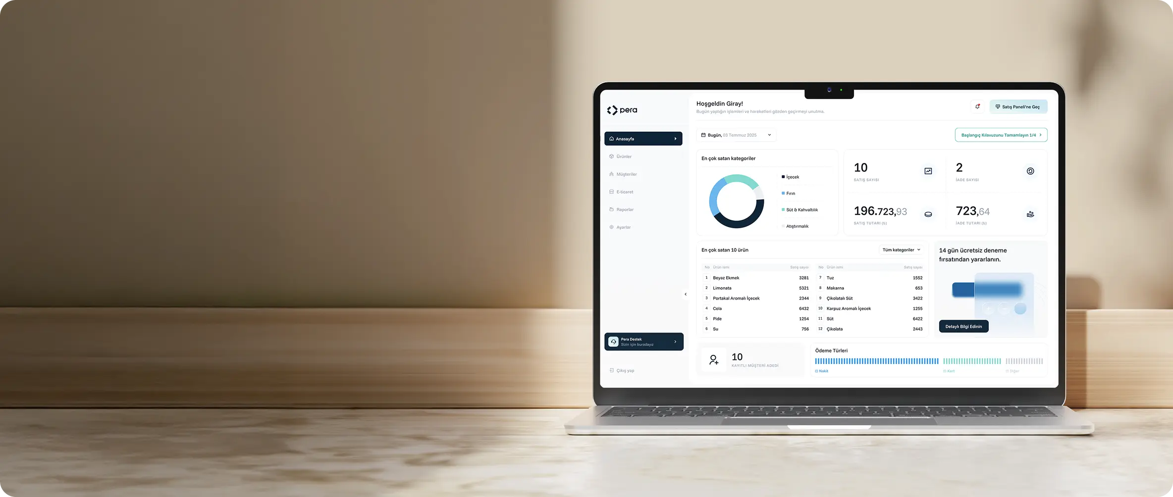 Hesabınızı oluşturun, mağaza ve donanım ayarlarınızı tamamlayın, Pera ile hızlıca satış yapmaya başlayın!